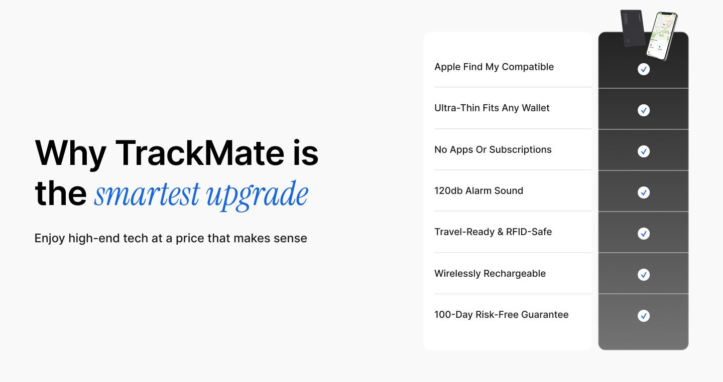 We offer a 100-day risk-free return policy. Try TrackMate — and if it’s not for you, send it back for a full refund.