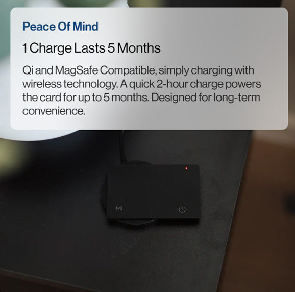 At just 1.8 mm thick, it slips into any wallet slot without bulk. Enjoy hassle-free wireless charging — no need to replace batteries, ever.