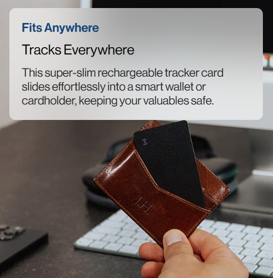 Slip TrackMate Smart Card into your wallet, bag, or passport holder. It’s ultra-thin and fits anywhere.